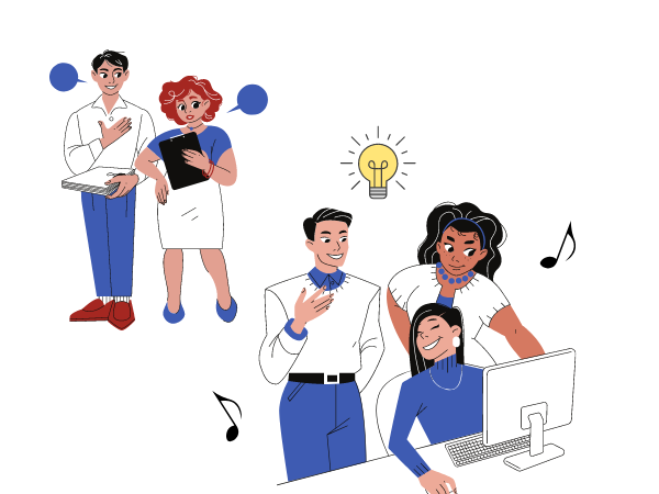 会社内でみんなが頭を付け合わせることで